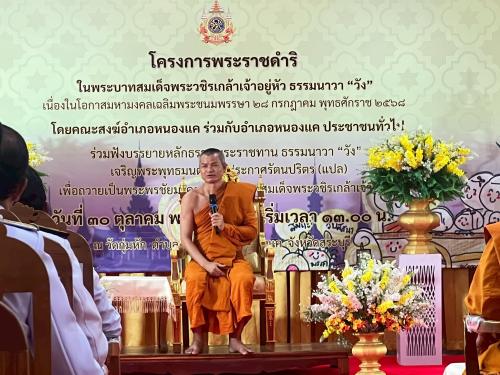 นายสันทัศน์ รันดาเว นายอำเภอหนองแค เป็นประธานในโครงการพระราชดำริ ในพระบาทสมเด็จพระวชิรเกล้าเจ้าอยู่หัว ธรรมนาวา “วัง” เนื่องในโอกาสมหามงคลเฉลิมพระชนมพรรษา 28 กรกฎาคม พุทธศักราช 2568 ร่วมฟังการบรรยาย เรื่องการเผยแผ่ตามหลักธรรมพระราชทาน ธรรมนาวา “วัง” แก่หน่วยงานภาครัฐ ภาคเอกชน ประชาชนทั่วไป และนักเรียน นักศึกษา โดย พระราชเมธีวชิรดิลก ผู้ช่วยเจ้าอาวาสวัดชูจิตธรรมาราม ณ วัดกุ่มหัก ตำบลกุ่มหัก อำเภอหนองแค จังหวัดสระบุรี