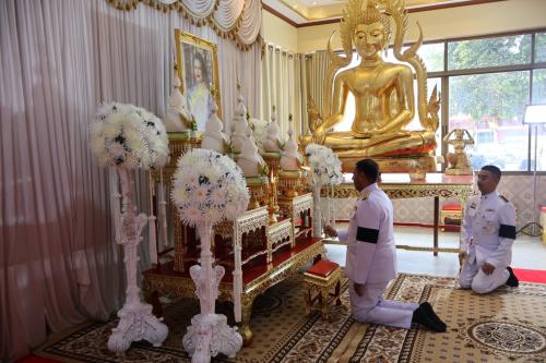การนี้ นางรุ่งนภา รักฉายา พัฒนาการอำเภอหนองแค พร้อมด้วยนางสาวสุรีรัตน์ อุตแก้ว นักวิชาการพัฒนาชุมชนปฏิบัติการ และนายกิตติคุณ ภู่ภักดี นักวิชาการพัฒนาชุมชนปฎิบัติการ ได้นำเข็มกลัดริบบิ้นดำไปแจกจ่ายให้กับประชาชนเพื่อใช้สำหรับติดเสื้อไว้อาลัย และเข้าร่วมพิธีในครั้งนี้ด้วย